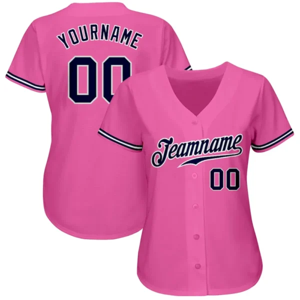 Custom Pink Navy-White Authentic Baseball Jersey