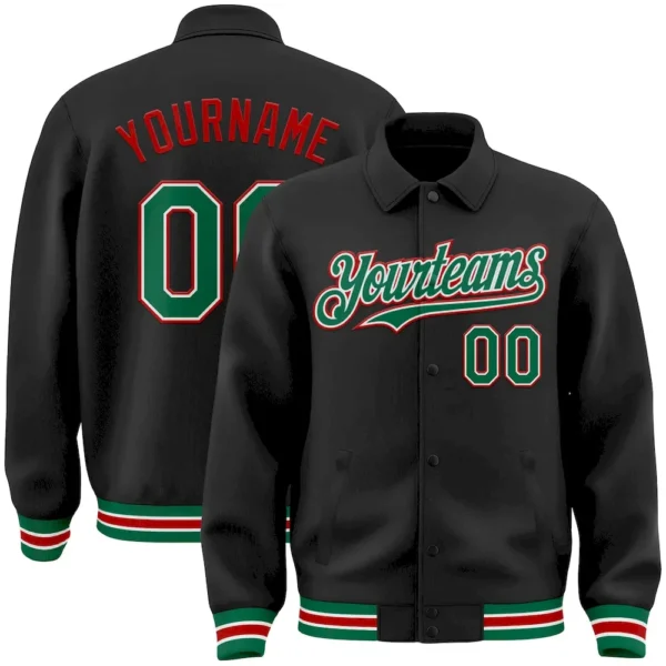 Custom Black Kelly Green-Red Bomber Full-Snap Varsity Letterman Lapel Collar Byron Jacket