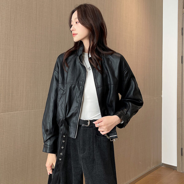 Pinched waist short coat fashion leather coat