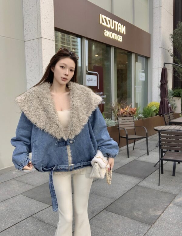 Chanelstyle down sequins fox fur sleeve winter jacket