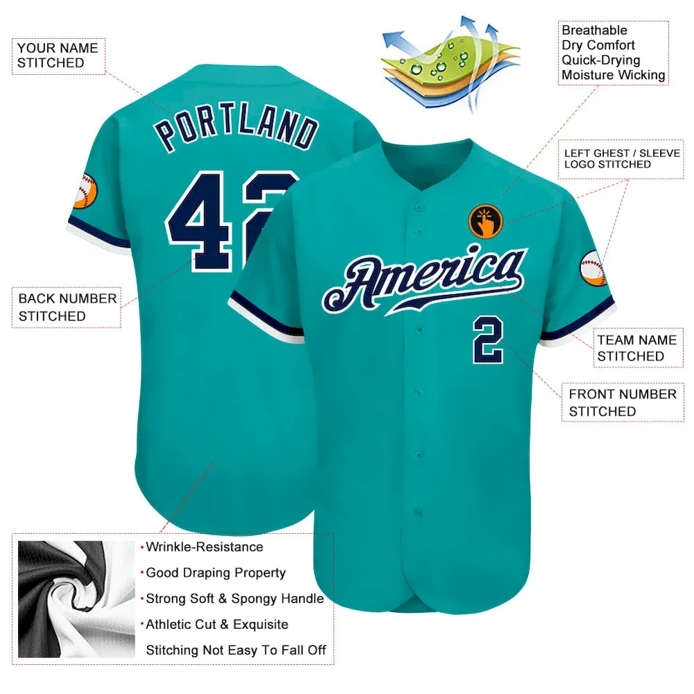 Custom Aqua Navy-White Authentic Baseball Jersey