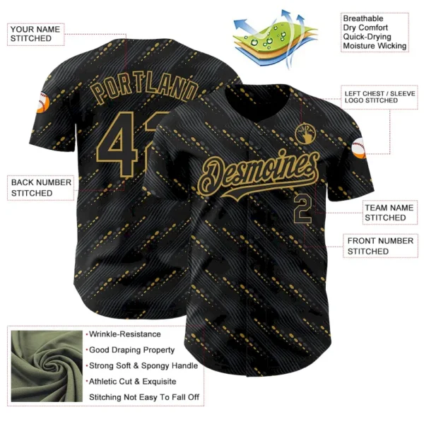 Be the first to review “Custom Black Old Gold 3D Pattern Design Slant Lines Authentic Baseball Jersey” Cancel reply