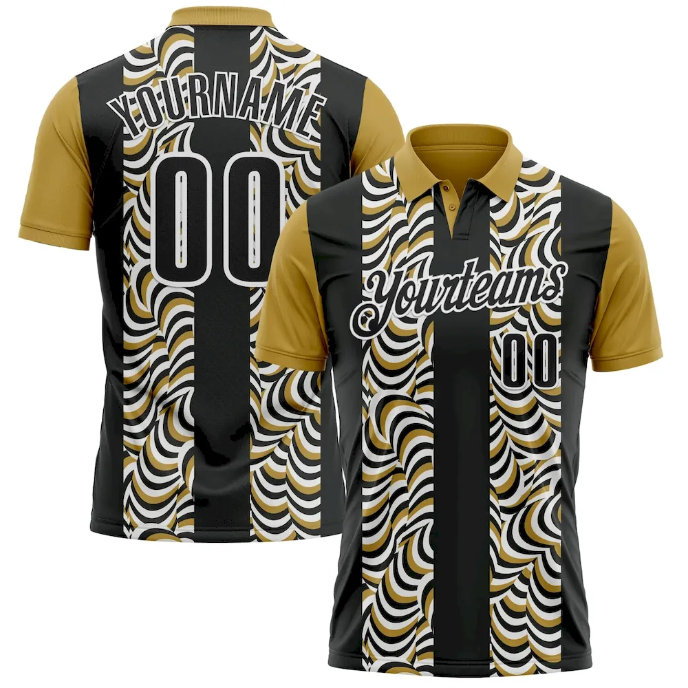 Custom Black Old Gold-White 3D Bowling Geometric Shape Performance Polo Shirt