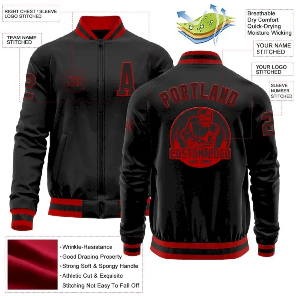 Be the first to review “Custom Black Red Bomber Varsity Letterman Zipper Jacket” Cancel reply