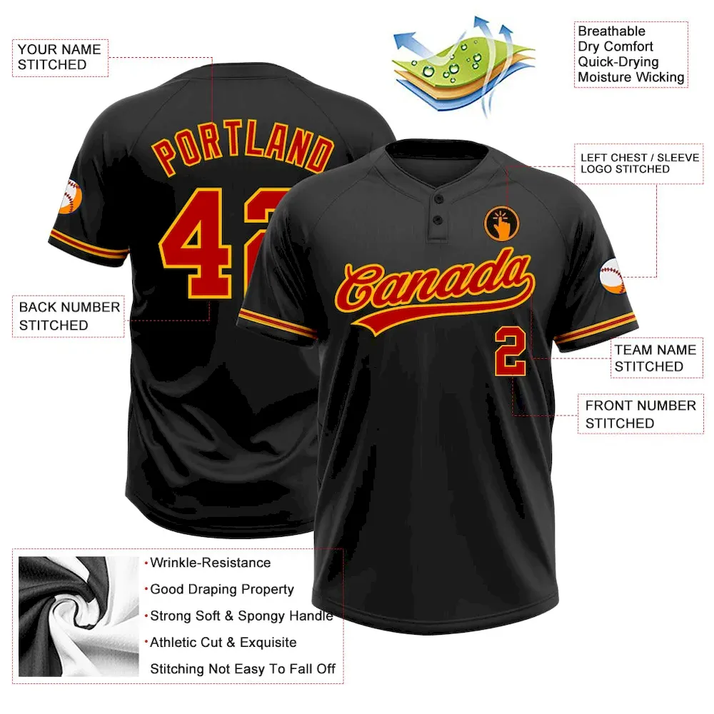 Be the first to review “Custom Black Red-Gold Two-Button Unisex Softball Jersey” Cancel reply