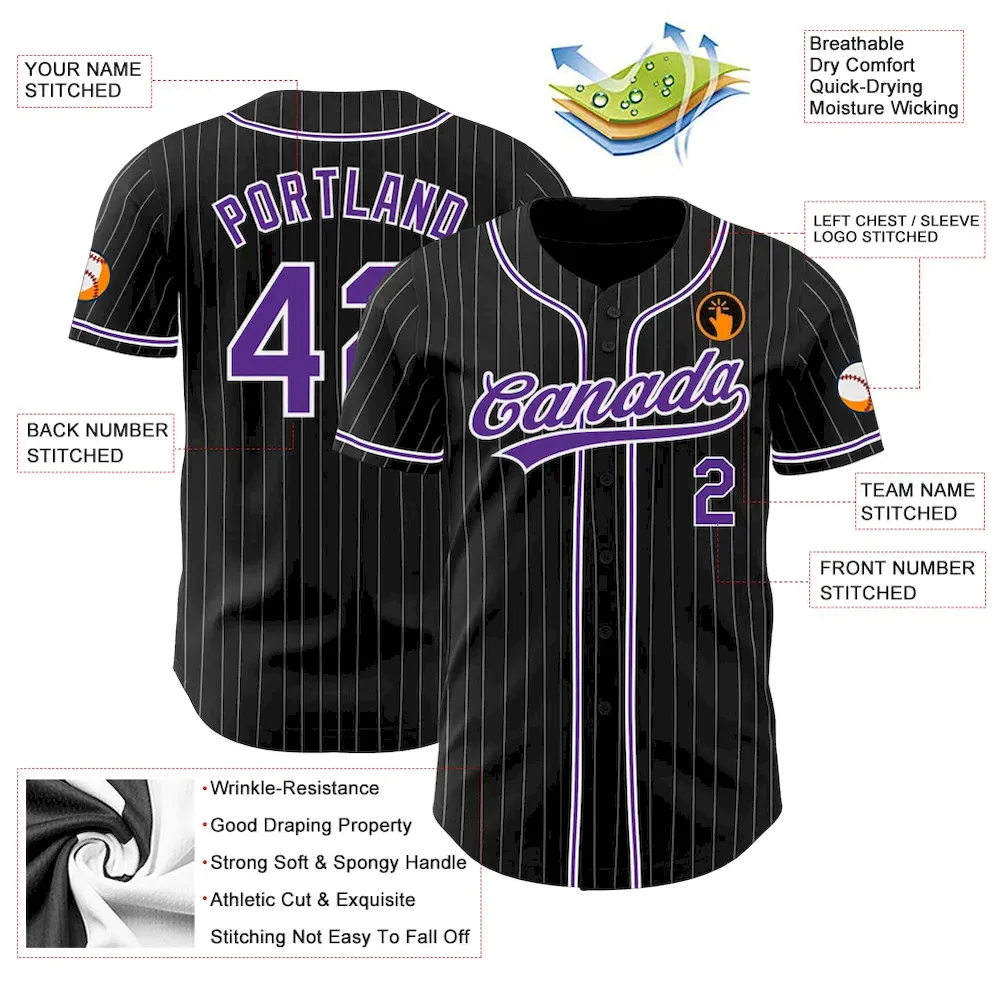 Be the first to review “Custom Black White Pinstripe Purple Authentic Baseball Jersey” Cancel reply