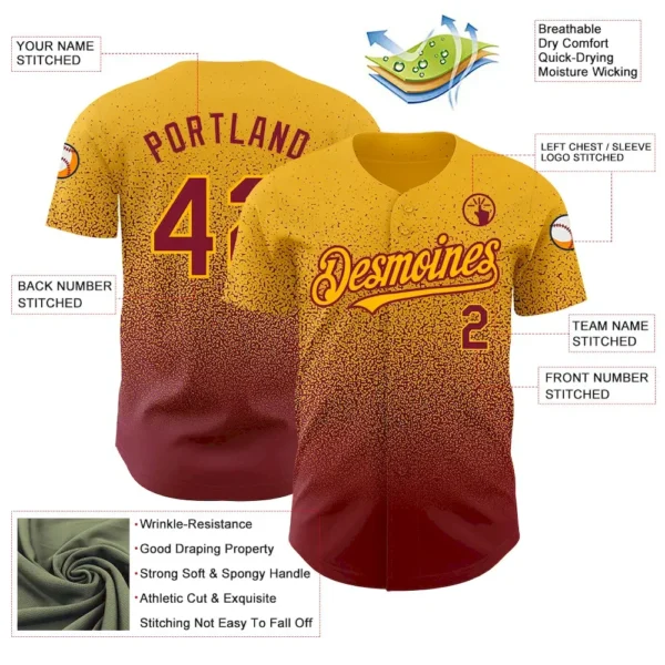 Be the first to review “Custom Gold Crimson Authentic Fade Fashion Baseball Jersey” Cancel reply