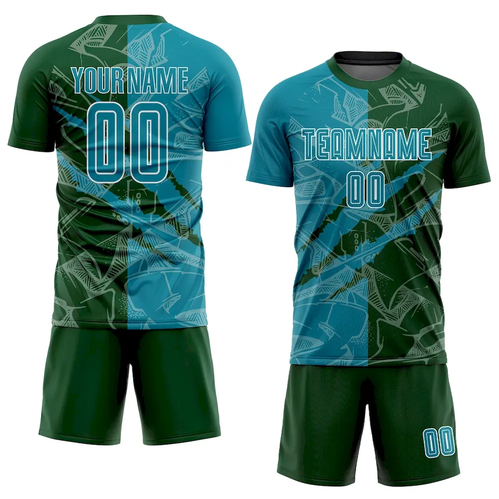 Be the first to review “Custom Graffiti Pattern Teal-Green Scratch Sublimation Soccer Uniform Jersey” Cancel reply