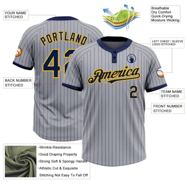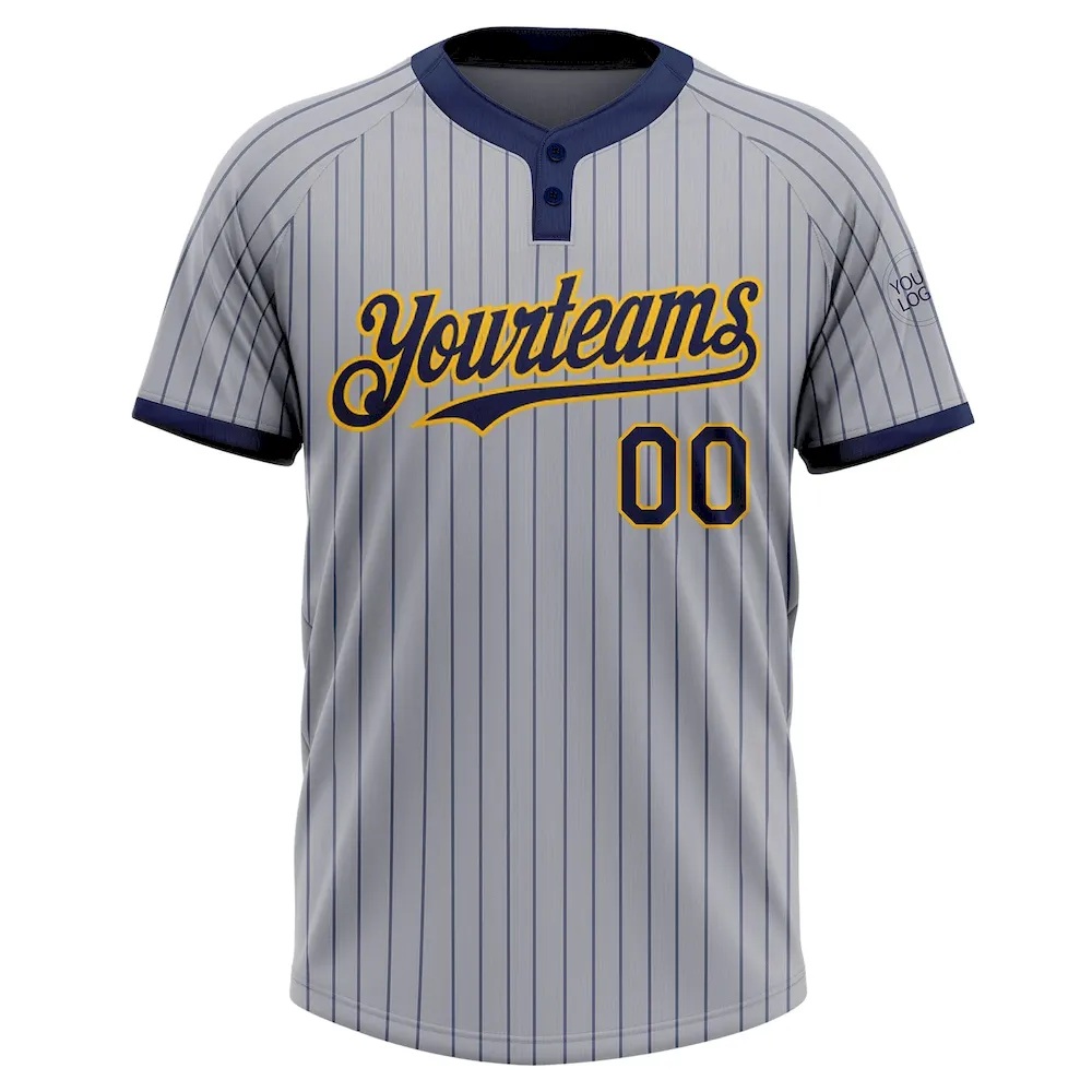 Be the first to review “Custom Gray Navy Pinstripe Gold Two-Button Unisex Softball Jersey” Cancel reply