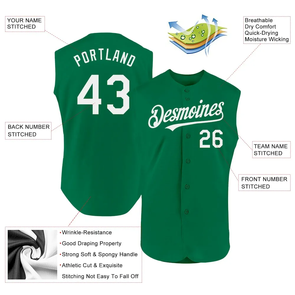 Be the first to review “Custom Kelly Green White Authentic Sleeveless Baseball Jersey” Cancel reply