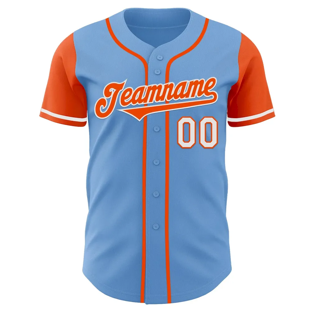 Be the first to review “Custom Light Blue Orange-White Authentic Two Tone Baseball Jersey” Cancel reply