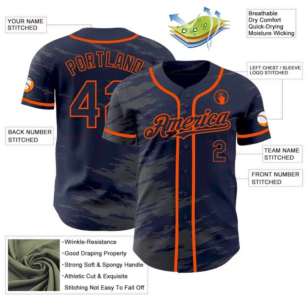 Custom Navy Steel Gray Splash Ink Orange Authentic Baseball Jersey