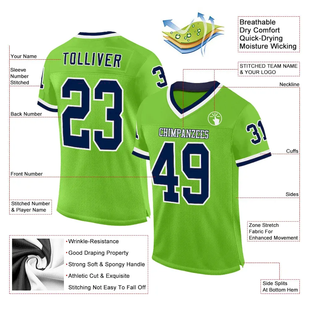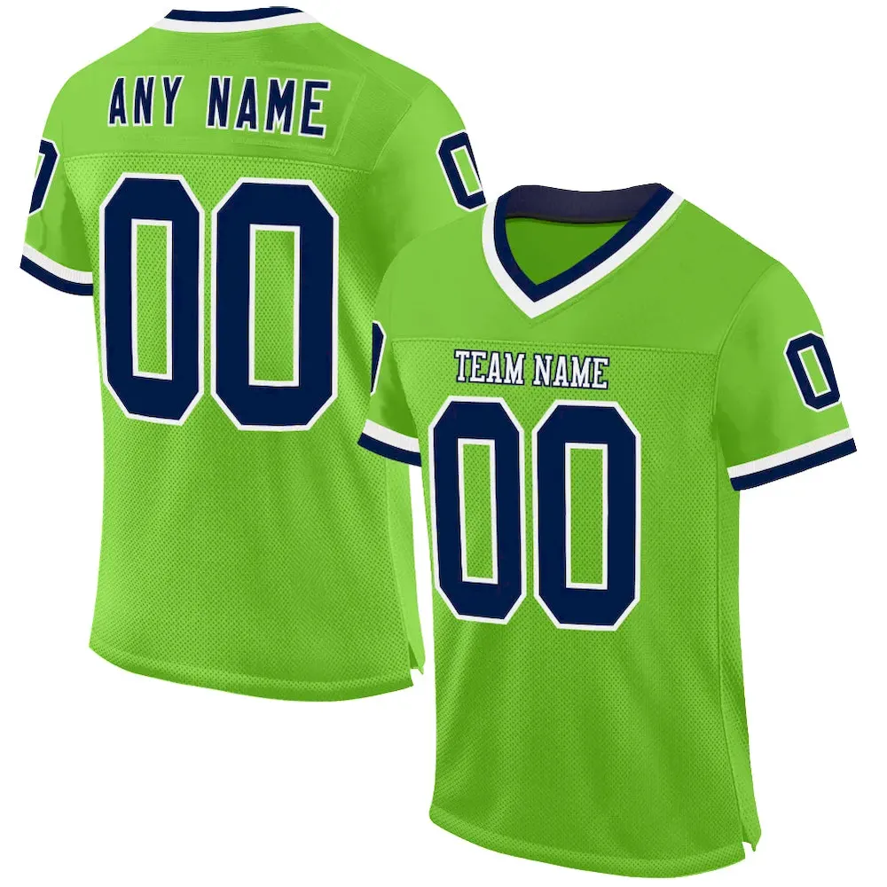 Be the first to review “Custom Neon Green Navy-White Mesh Authentic Throwback Football Jersey” Cancel reply
