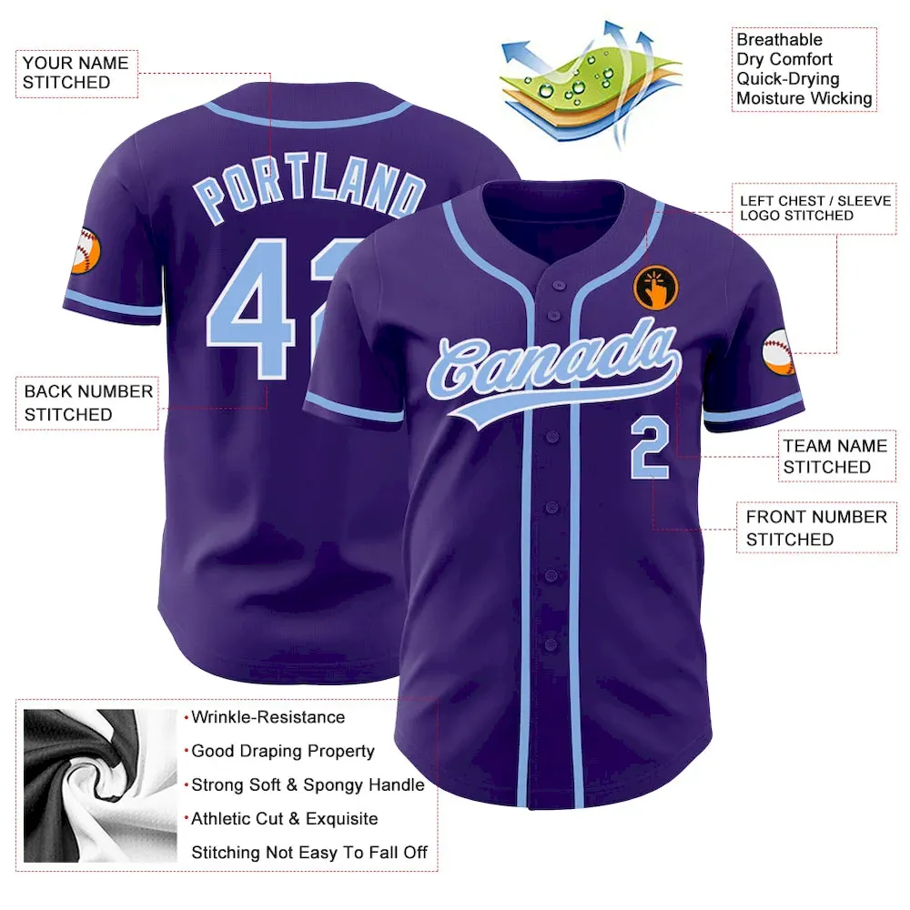 Custom Purple Light Blue-White Authentic Baseball Jersey