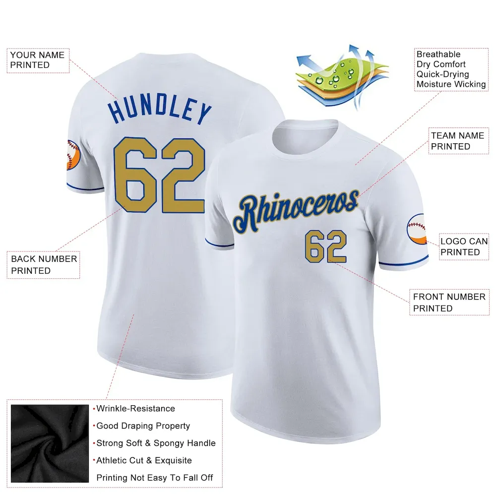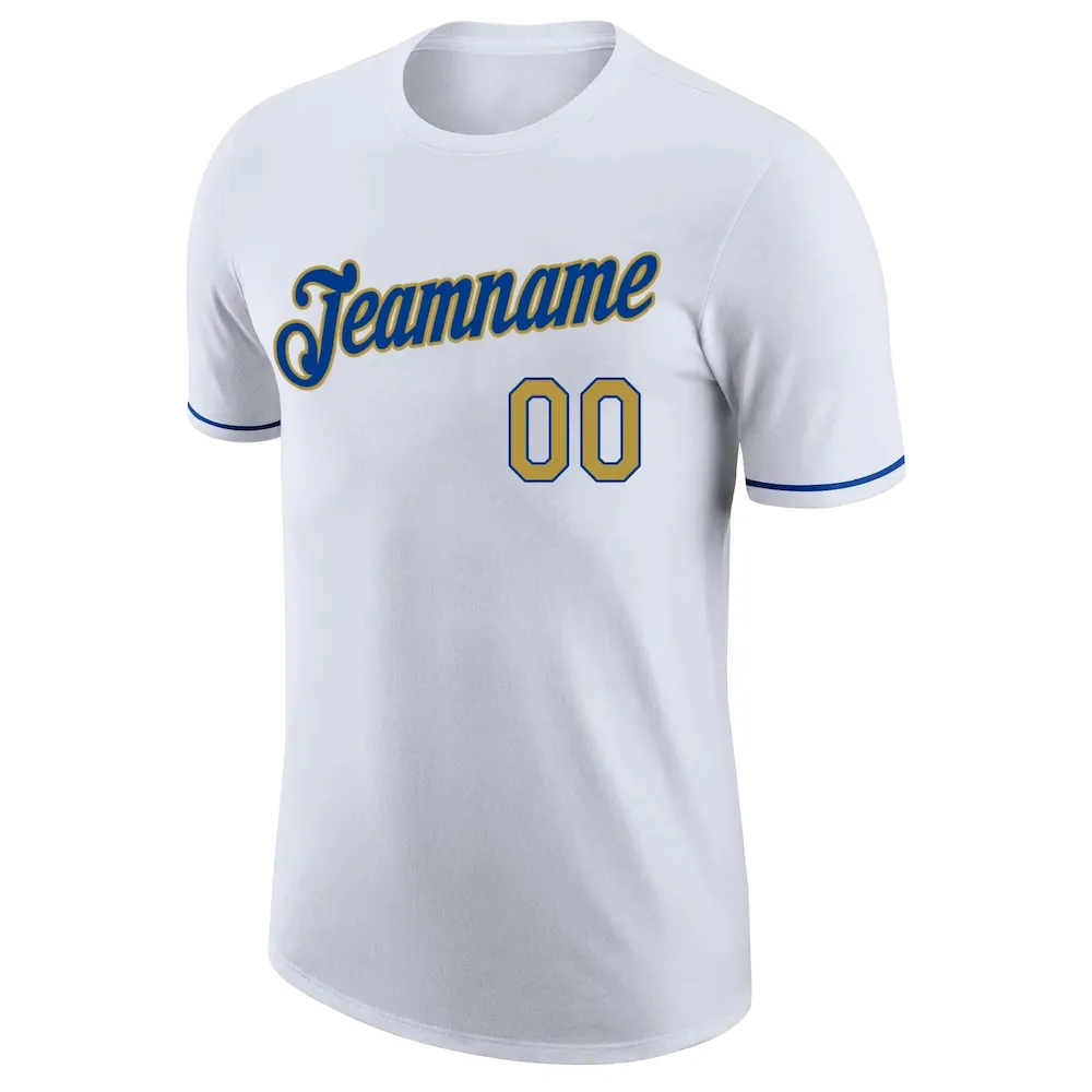 Custom White Old Gold-Royal Performance T-Shirt