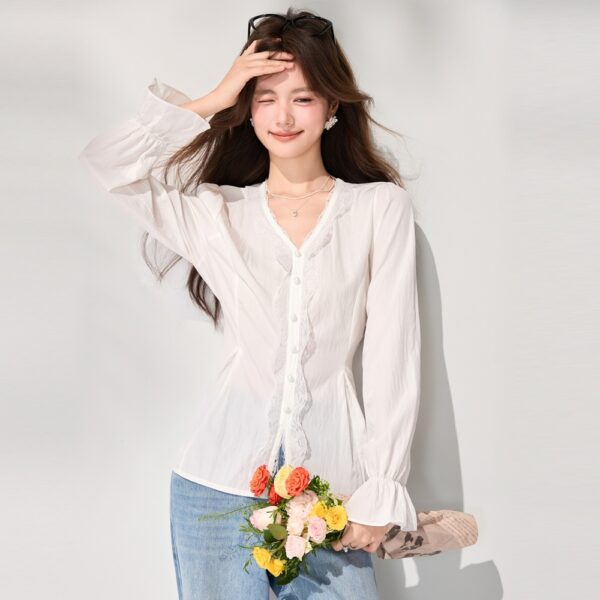 White spring lace shirt splice France style tops