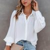 - Unique hollow out lace crochet design. long puff sleeve. button down closure. stand collared. Pleated. solid color. regular fit.