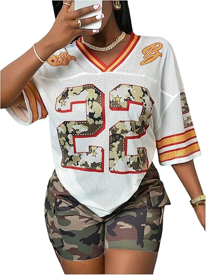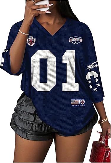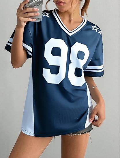 Jersey Shirts for Women Oversized V Neck Tshirt Number Graphic Shirt Casual Y2k Streetwear Tee Tops
