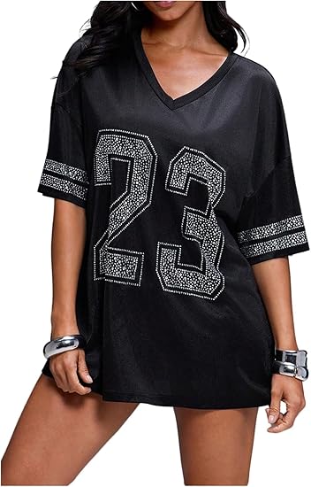 Jersey Shirts for Women Oversized T-Shirt Jersey Top Graphic V Neck T-Shirts for Teen Girls Casual Basketball Tee Tops