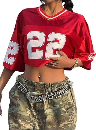 Jersey Shirts for Women Y2K Number Graphic Crop Tops Half Sleeve Summer Tees