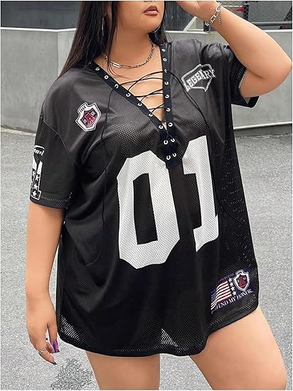 Women’s Plus Size Y2k Number Jersey Shirts V Neck Streetwear Tee Tops