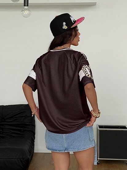 Women’s Y2k Leopard Number Graphic Oversized Tops Football Jersey Shirts Streetwear