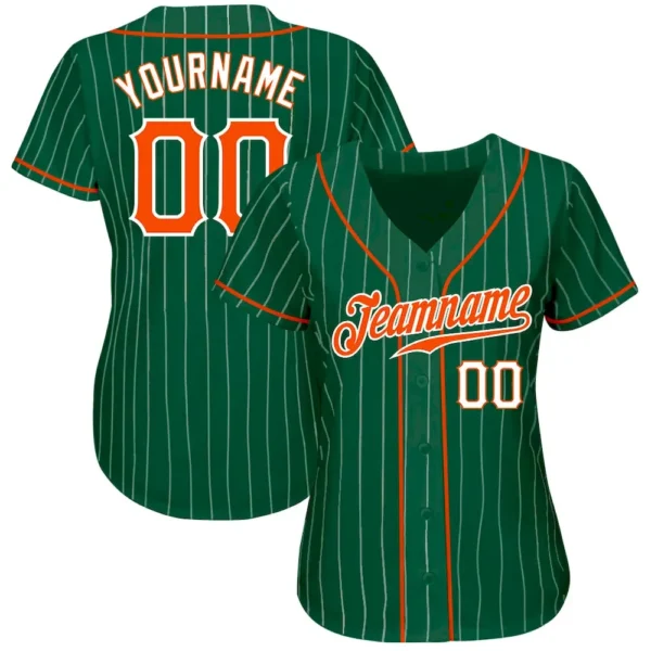 Custom Kelly Green White Pinstripe Orange-White Authentic Baseball Jersey