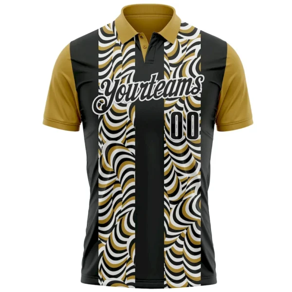 Custom Black Old Gold-White 3D Bowling Geometric Shape Performance Polo Shirt
