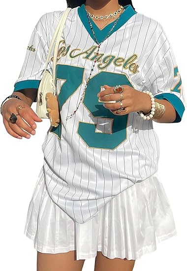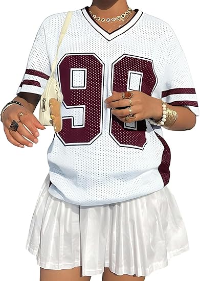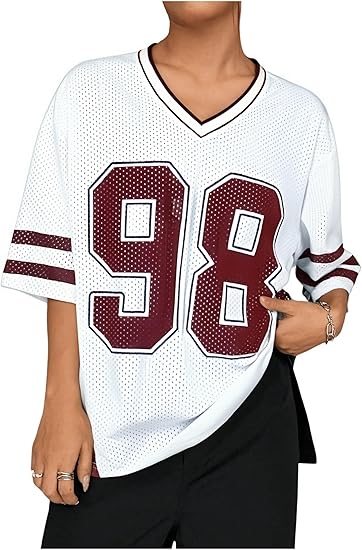 ersey Shirts for Women Y2k Graphic Number Shirt Oversized V Neck Shirts Casual Streetwear Summer Tops