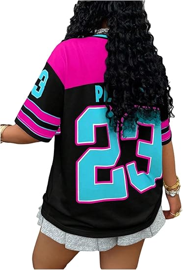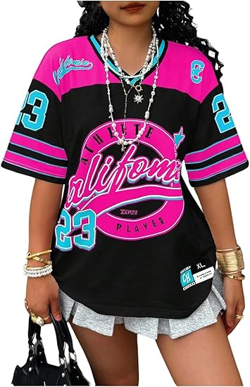 Women’s Plus Size Y2k Number Jersey Shirts V Neck Streetwear Tee Tops
