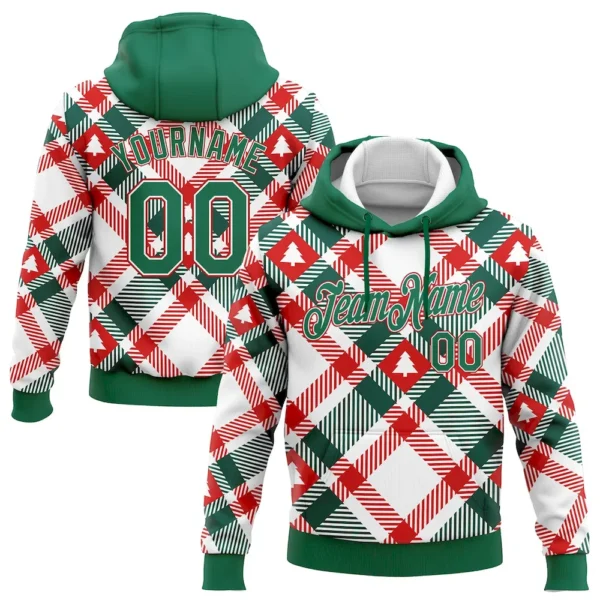 Custom Stitched White Kelly Green-Red Christmas Tree 3D Sports Pullover Sweatshirt Hoodie