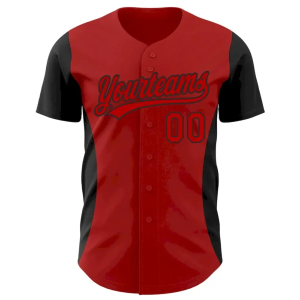 Custom Red Black 3D Pattern Design Side Stripes Authentic Baseball Jersey
