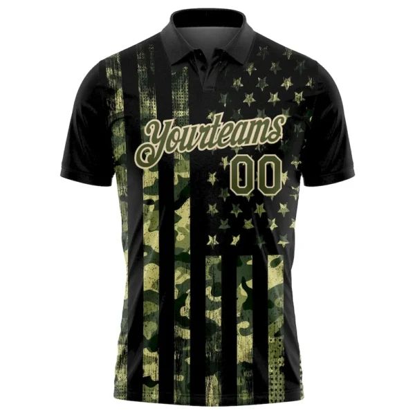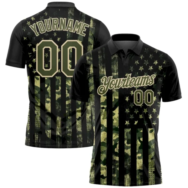 Custom Camo Olive-Cream 3D American Flag Performance Salute To Service Golf Polo Shirt