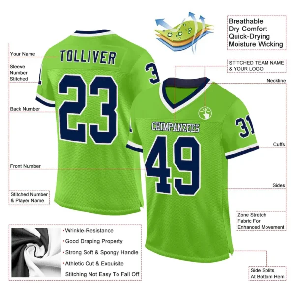 Custom Neon Green Navy-White Mesh Authentic Throwback Football Jersey