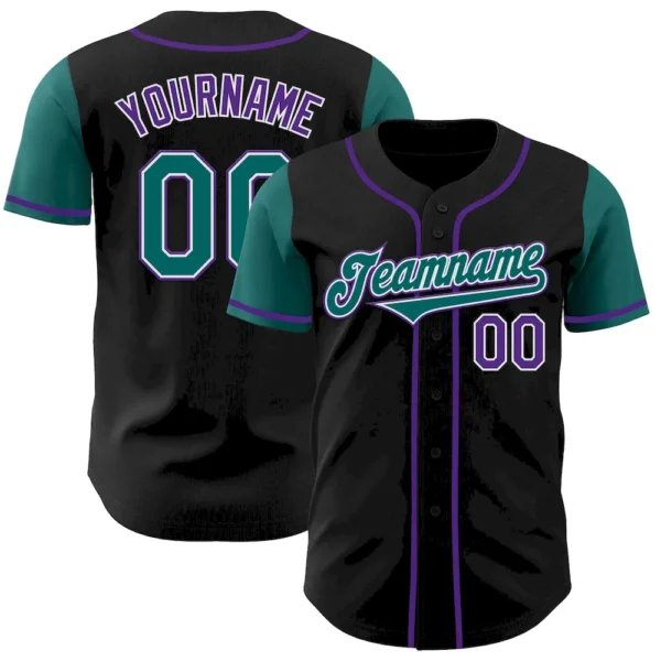 Custom Black Teal-Purple Authentic Two Tone Baseball Jersey