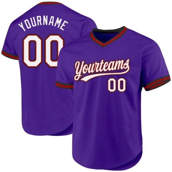 Custom Purple Red-Black Authentic Throwback Baseball Jersey