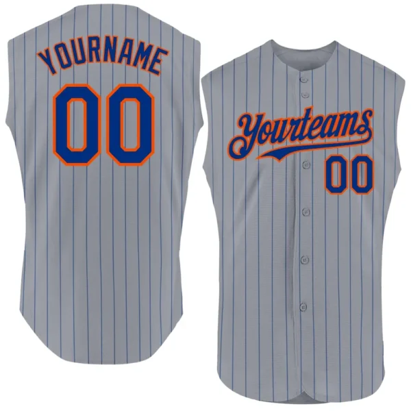 Custom Gray Royal Pinstripe Orange Authentic Sleeveless Baseball Jersey