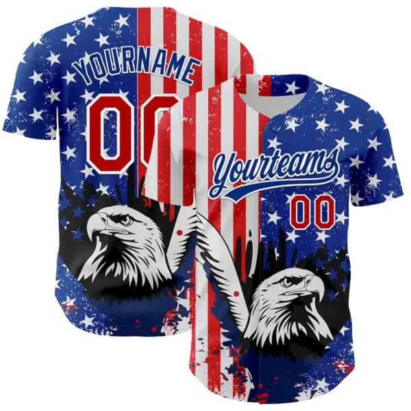 Custom White Red-Royal 3D American Flag Eagle And Star Authentic Baseball Jersey