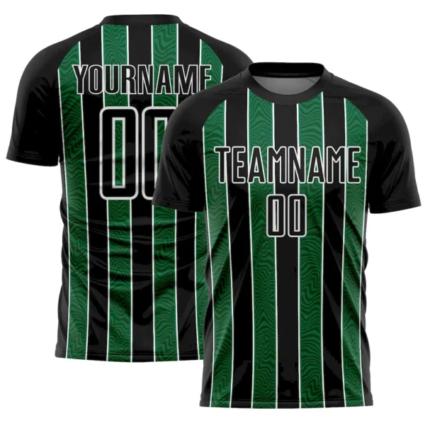Custom Black Kelly Green-White Line Sublimation Soccer Uniform Jersey