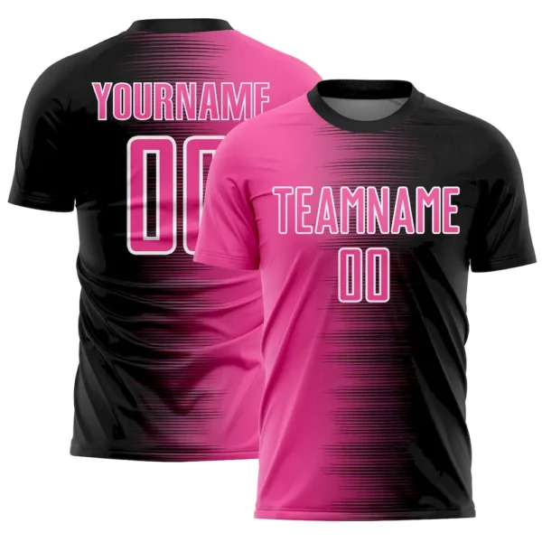 Custom Black Pink-White Gradient Line Sublimation Soccer Uniform Jersey
