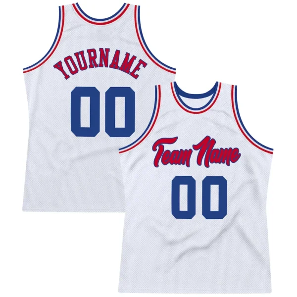 Custom White Royal-Red Authentic Throwback Basketball Jersey
