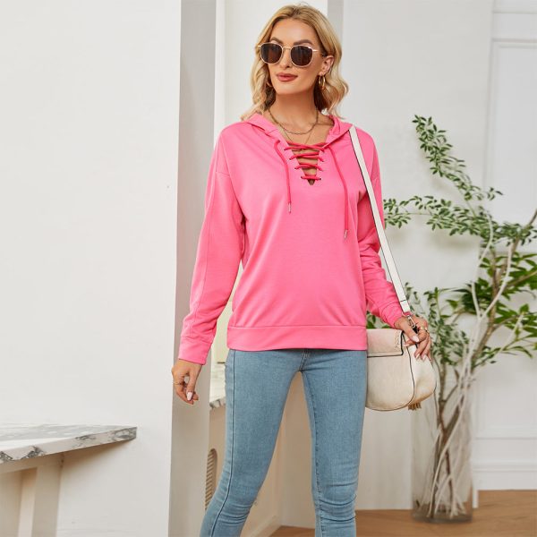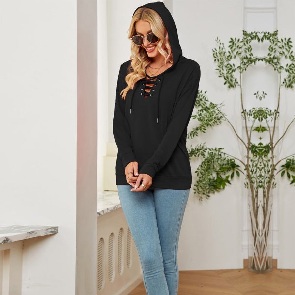 Women’s Neck Tie Long Sleeve Hooded Sweatshirt