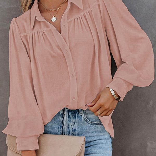 Women’s V-neck Chiffon Long-sleeved Casual Business Office Work Shirt