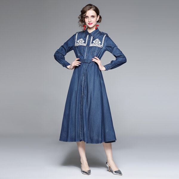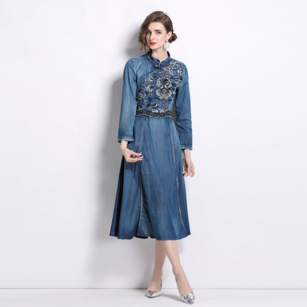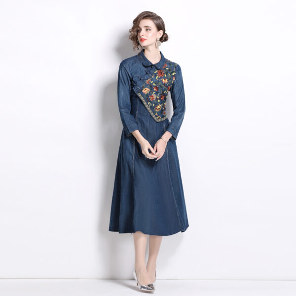 Denim embroidery cheongsam spring dress for women