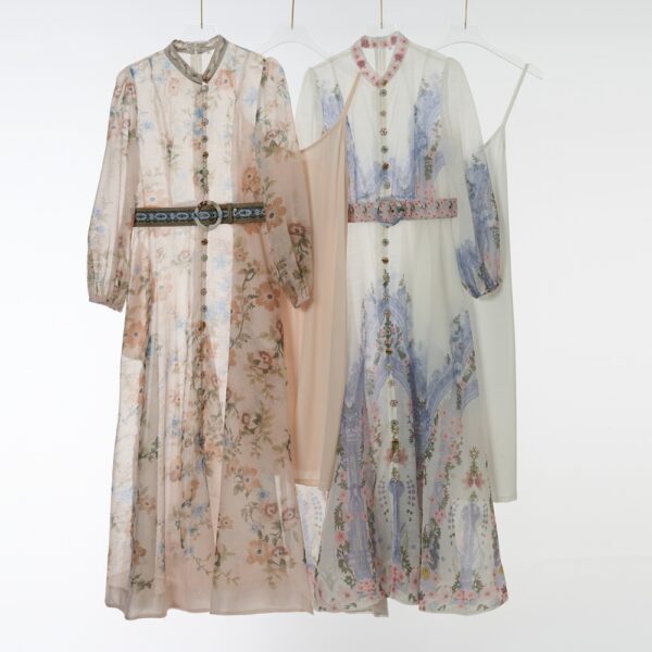 Sling inside the ride long printing dress 2pcs set