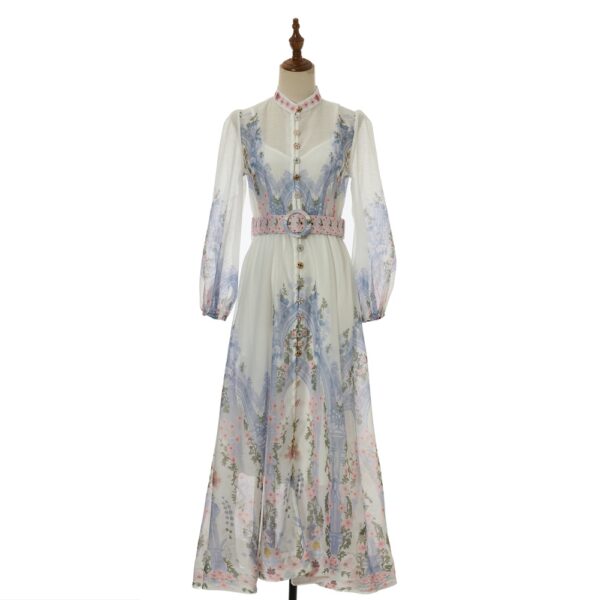 Lantern sleeve spring dress pleated belt