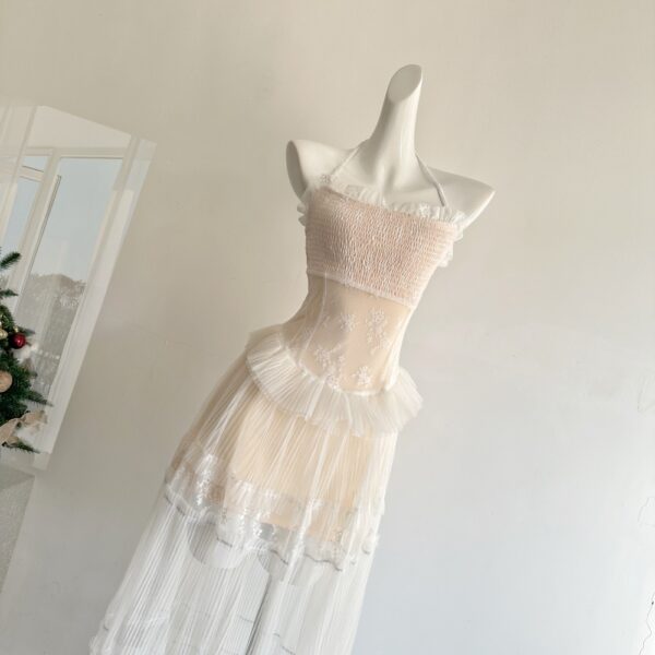 Lace embroidered drape gauze dress