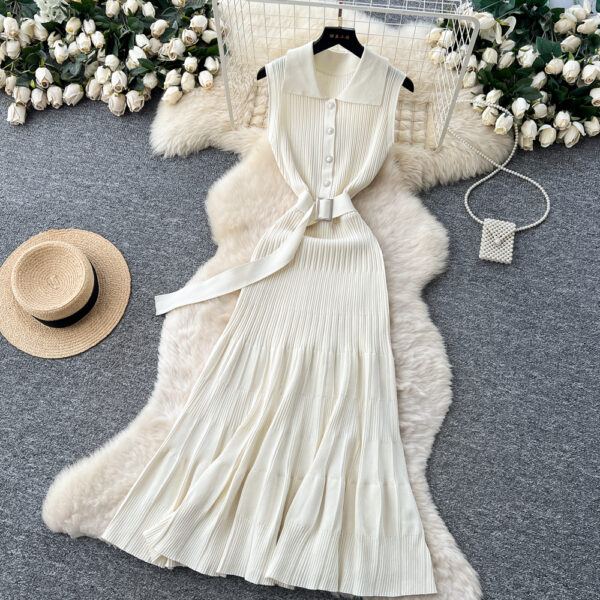 Round neck sleeveless dress knitted France style long dress