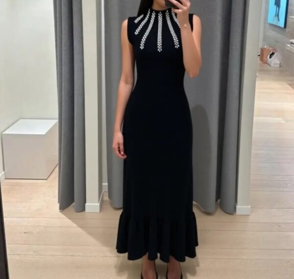 Rhinestone decoration elegant dress for women