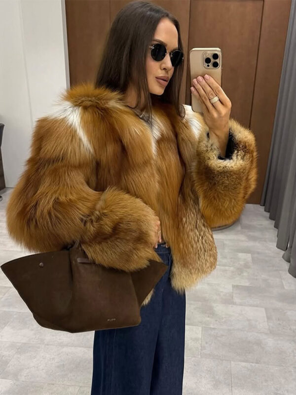 Light V-neck fashion temperament winter fur coat for women